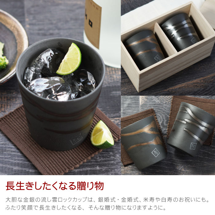 古希 お祝い 還暦祝い 男性 ロックグラス 名入れ ギフト 【 金 銀 流し雲 ロックカップ ペア 】 美濃焼 ペアグラス 焼酎グラス フリーカップ 金婚式 両親 銀婚式 結婚記念日 30周年 夫婦 祖母 誕生日 還暦 女性 喜寿 傘寿 祝い ペアギフト クリスマス FLEGRE