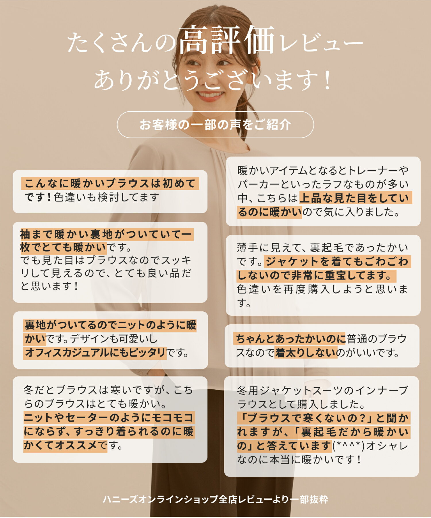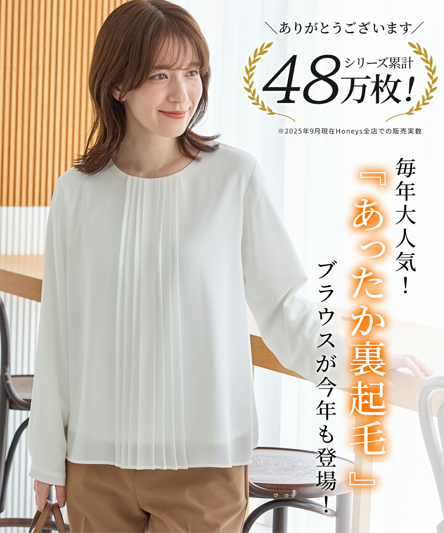 \限定クーポン配布中♪/トップス ブラウス 長袖 ハニぽか あったか 大きいサイズ オフィス きれいめ プリーツ 無地 レディース Honeys ハニーズ あったか裏地プリーツブラウス