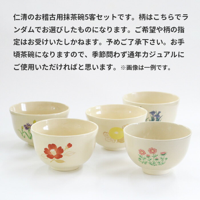 茶道具 抹茶茶碗 仁清写し おけいこ 茶碗 絵付 5客セット 柄ランダム 訳あり 【返品交換不可】送料無料