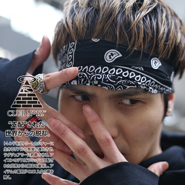 b系 ヒップホップ ストリート系 ファッション メンズ レディース ヘアバンド CLUB NO1Z クラブノイズ ヘアーバンド ゴム スポーツ 洗顔 アウトドア ヘアバン バンダナ ペイズリー Fサイズ 黒 紺 赤 CN-HR-BA-002