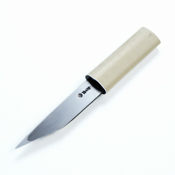 製品仕様 ■サイズ: 本体 全長約225mm 鞘含む全長約240mm 刃部 刃渡り約120mm 刃幅約25mm(最大) 刃厚約3mm 柄部 長さ約100mm 幅約35mm 厚み約20mm 木鞘 長さ約140mm 幅約35mm 厚み約20mm ■重量 :本体約95g 鞘含む約120g ■材質 :切刃 青紙2号 柄 朴(ホウ) ■刃の形状:黒打ち仕上げ 片刃(右利き用) ■製造 :日本製 ■付属品:木鞘付き ■用途 :日曜大工、模型造り、園芸、小細工用 ■特徴 熱間鍛造と冷間鍛造の二回の鍛造を行うことで優れた硬さや粘りと切れ味を実現 地元三木の鍛冶職人による手造り品です 竹細工や木工作業、模型造り大活躍する横手小刀です 木鞘付きなので持運びや保管にも便利 研ぐことで一生お使いいただける本職向けの小刀です