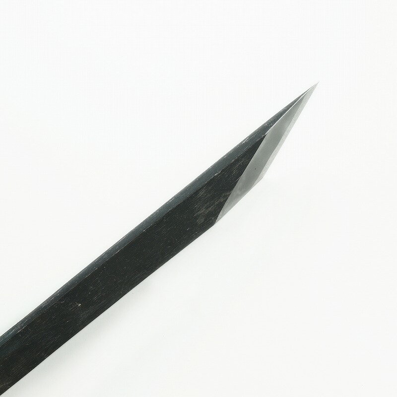 製品仕様 ■サイズ :全長約200mm 刃部 刃渡り約44mm 刃幅約30mm(刃元) 刃厚約4.5mm ■重量 :約122g ■材質 : 刃部 切刃 青紙鋼、地金 軟鉄 柄部 共柄 ■刃の形状:黒打ち 片刃(右利き用) ■用途:うなぎやアナゴのなどの長物の捌き ■製造:日本製 ■特徴 関西でよく使われる鰻包丁です。 大阪型で鰻を腹側から開く「腹開き」が得意な形状。 刃には青紙鋼を使用し鋭い切れ味が永く続きます。 当社近くの人情あふれる下町で、親子孫の3代で頑張る鍛冶職人が 昔ながらの製法で火造りして作っています。 ■注意 1丁づつ手造りの火造り鍛造品ですので製品によりサイズ等に個体差があります。 鋼製ですので錆びますので、こまめに水分を拭き取って下さい。