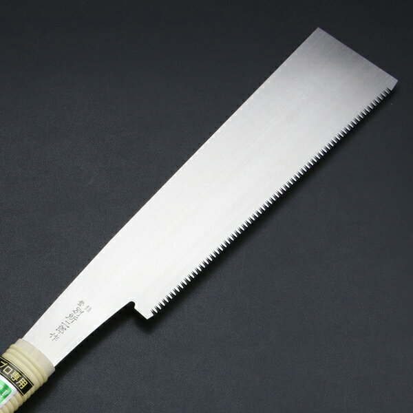製品仕様 ■サイズ:刃渡り240mm ■挽目:横挽 ■アサリ:無 ■用途材:ダボ・ホゾ ■製造:日本製 ■特徴: ダボより大きなホゾ等の切断の時、天板に沿わして挽いても表面を傷つけずに美しく切れ、仕上げも簡単に済ませることが出来ます。 研磨(スキ加工)を施し、刃部より背部を薄く透いていますので、アサリ無しでも詰まりにくくスムーズに切れます。 ■注意: この商品は切れ味を優先した商品のため折れやすく、本職以外の方にはお勧めできません。 こぜる、曲げる、ねじる、つめる等は、折れの原因になります。 軽く、真っ直ぐに鋸刃をストロークしてご使用ください。