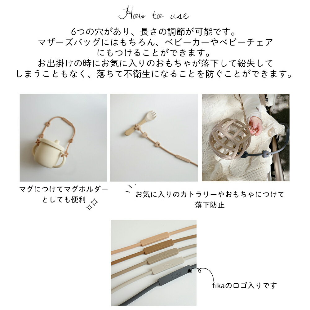 > 商品名 シリコンストラップ×シリコンベビーボール サイズ (ストラップ)全長約52cm (ベビーボール) 約10cm 素材 シリコン (シリコン商品は20℃から220℃までの耐熱性がありますので、熱に強く、清潔にご使用いただけます) 商品説明 (ストラップ) 先端に歯固めやおしゃぶり、お気に入りのおもちゃやマグホルダーを付けることのできる シリコン製のストラップです。 ホルダーは、大切なオモチャやおしゃぶり、歯固めがいつでも赤ちゃんの手に取りやすく、落下から守ります。 6つの穴があり、長さの調節が可能です。 マザーズバッグにはもちろん、ベビーカーやベビーチェアなどにもつけることができます。 お出掛けの時にお気に入りのおもちゃが落下して紛失してしまうこともなく、落ちて不衛生にな ることを防ぐことができます。 水洗いができるのでお手入れも簡単です。 シリコンはBPAフリー、フタル酸エステル等の環境ホルモンを含まない安全なものを使用しています。 シリコンは厚生労働省認定の検査機関で検査し、食品衛生基準をクリアしていますので、赤ちゃんに安心してお使いいただけます。 (ベビーボール) シリコン製のベビーボールです。 やわらかくて つかみやすくて なげても安全 お口に入れても安心 赤ちゃんがはじめて出会うボールだから、パパにもママにも安心して使ってもらえますように…。 fikaのベビーボールは、日本の厚生労働省登録検査機関にて、食品衛生法(食品、添加物等の規格基準)の試験を受け、クリアしたものを販売していますので、安心してお使いいただけます。 なげたり、ひっぱったり、カミカミしたり。 水の中に入れてもOKなので、お風呂でも遊べます! 中にハンカチを入れて、引っ張り出していく、指先を使う遊びにも使っていただけます。 転がしキャッチボールなど、パパママとも一緒に遊べるおもちゃなので、お子様とたくさん遊んでくださいね。 ▶︎ご確認ください 製造工程における、シリコンのバリがついている場合がございます。 気になられる方はご購入をお控えいただくようお願い致します。 fikaの商品について fika(フィーカ)の商品は保育士ママ監修。 保育士だからこそわかるママの気持ちに寄り添った商品作りをしています。 シリコンは赤ちゃんのお口に直接入るものですので、BPAフリー、フタル酸エステル等の環境ホルモンを含まない安全なものを使用しています。 シリコンは厚生労働省認定の検査機関で検査し、食品衛生基準をクリアしていますので、赤ちゃんに安心してお使いいただけます。 木製パーツは全て無塗装・無着色の天然木製です。 ご使用上の注意 ・シリコンはホコリなどが付着しやすいので、ご使用前にウエットティッシュなどで拭いて下さい。 ・必ず保護者様の目の届くところでのご使用をお願いいたします。 ・思わぬ事故の原因となりますので、傷や亀裂が生じた場合には、ご使用を中止してください。 お手入れ方法 ・水洗い可 ・煮沸消毒可・・・沸騰したお湯に3~5分目安で入れ消毒してください。 ・食洗機の洗浄可 ・薬剤の消毒可・・・哺乳瓶用の薬液を使用することが可能です。 ・電子レンジ消毒・・・専用ケースに入れて消毒してください。各種機種によりお時間を確認してください。 洗浄後は乾いた状態で保管してください。 【関連ワード】 シリコン 歯固め 人気 出産祝い 贈り物 プレゼント お祝い ギフト ラッピング かわいい おしゃれ 誕生日プレゼント 友達 子供 子ども こども キッズ ベビー 赤ちゃん 幼児 乳児 男の子 女の子 孫