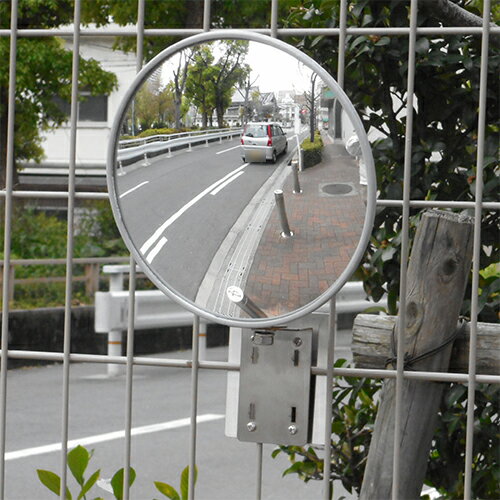 ガレージミラー 家庭用 フェンス挟み込み グレー 丸型 210φ サビない ステンレス製取付金具付き ガラス製ミラー 日本製 yh586