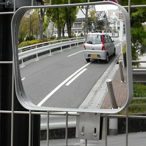 ガレージミラー 家庭用 グレー 角型 230×310mm フェンス挟み込み サビない ステンレス金具付き ガラス製ミラー 日本製 yh589