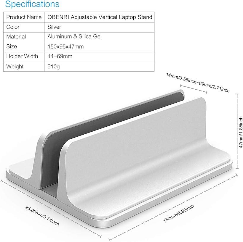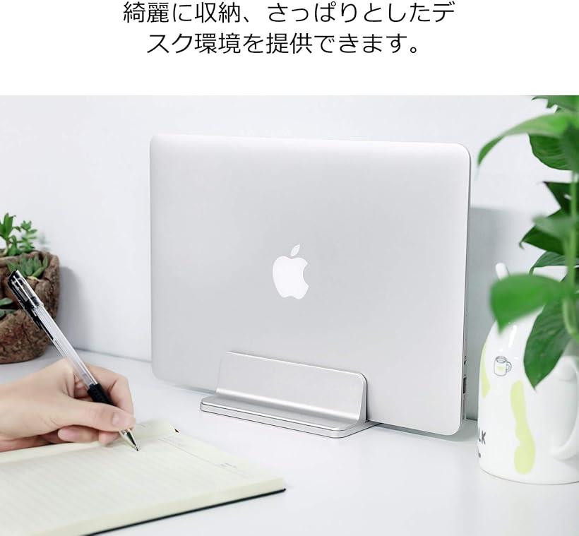 ノートパソコン スタンド 縦置き 収納 ホルダー幅調節可能 アルミ合金素材 Vertical Laptop Stand Designed for MacBook Pro Air Mini Clamshell Mode & All (シルバー)