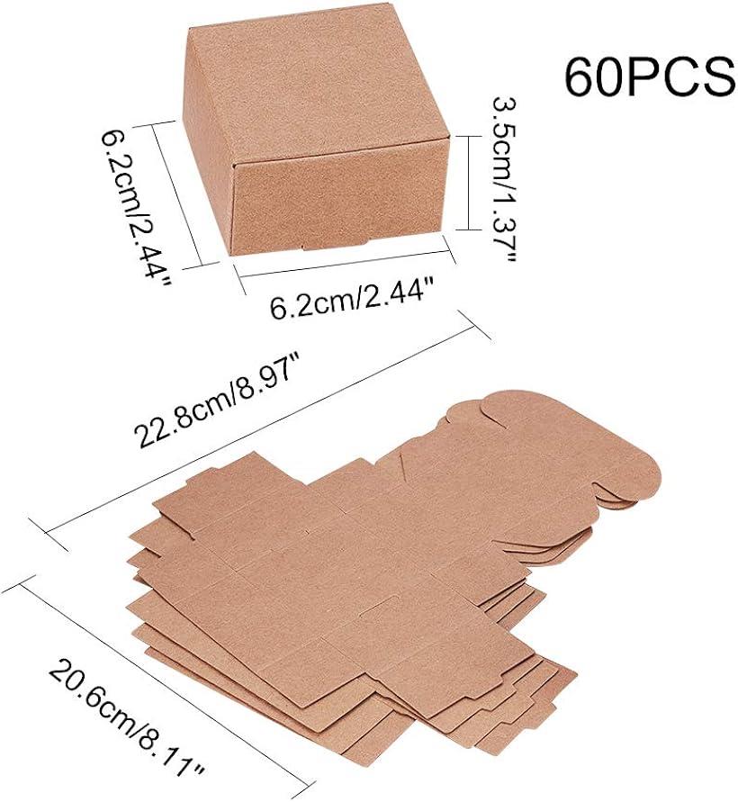 【楽天ランキング1位入賞】ギフトボックス クラフト紙製 無地 組立て式 60個セット キャンディボックス 6.2x6.2x3.5cm (木の色 60個セット)