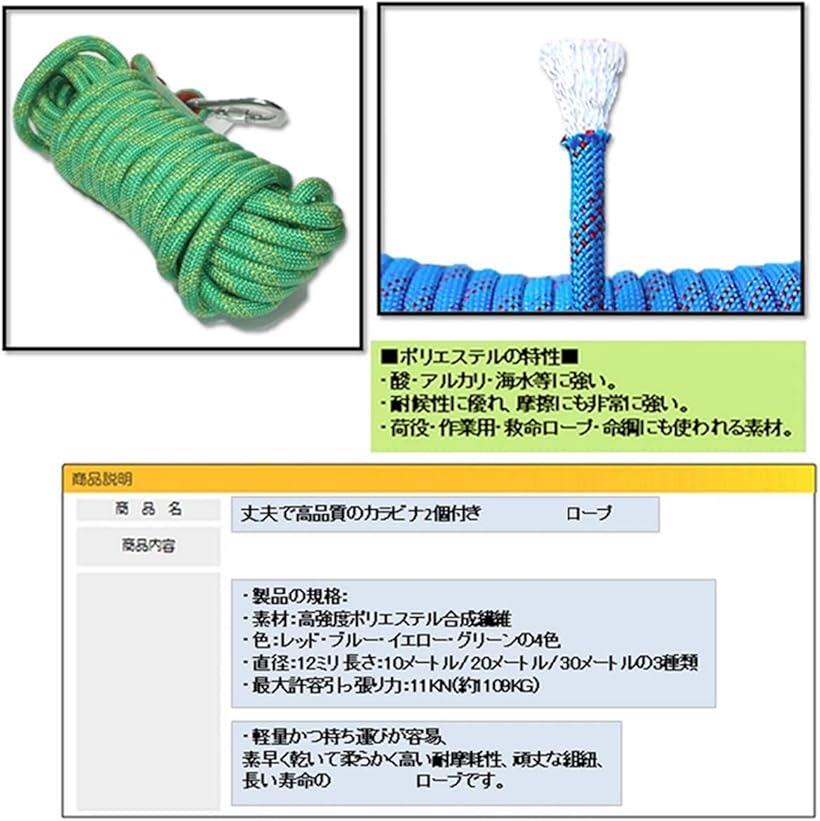直径 12mm 多目的 ロープ キャンプ アウトドア 引越し 荷物の吊上げ 防災道具 車の牽引 ボート 等(グリーン, 10m)