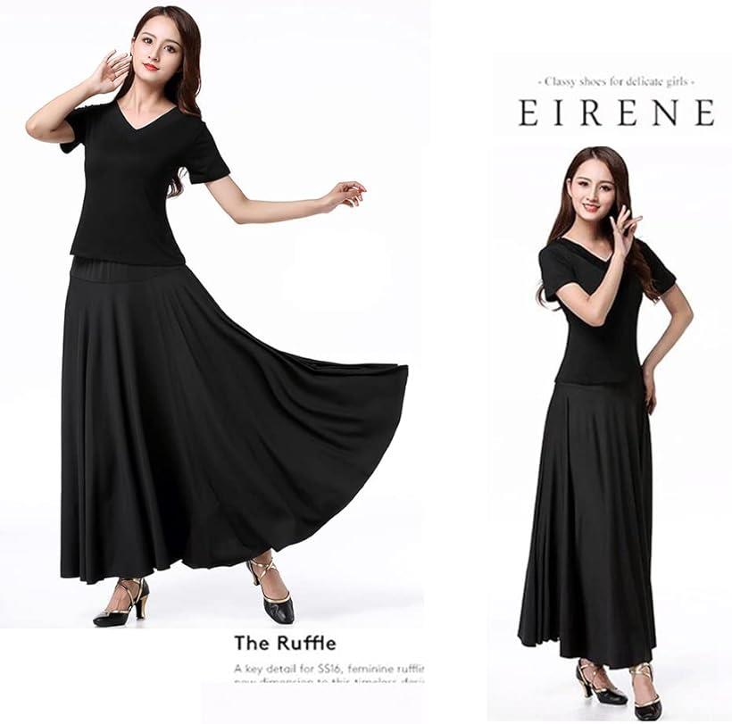 【楽天ランキング1位入賞】社交ダンス 練習着 スカート レディース ロング ミディアム ラテン シンプル 長袖 子ども ティーチャー 女性 定番 プロ ドレスタカ 兼用 コーラス 合唱 衣装 レッスン着 (ブラック, Free Size)
