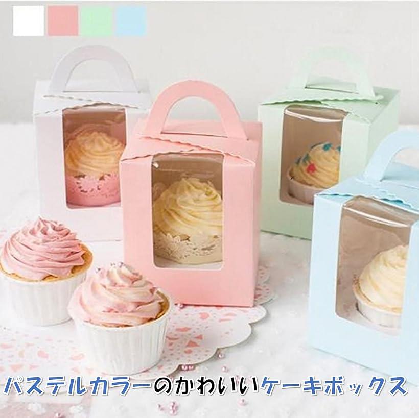【楽天ランキング1位入賞】ケーキボックス カップケーキ 箱 窓付き 24個 菓子箱 手提げ箱 紙箱 ギフトボックス 白・青・緑・ピンク (白・青・緑・ピンク)