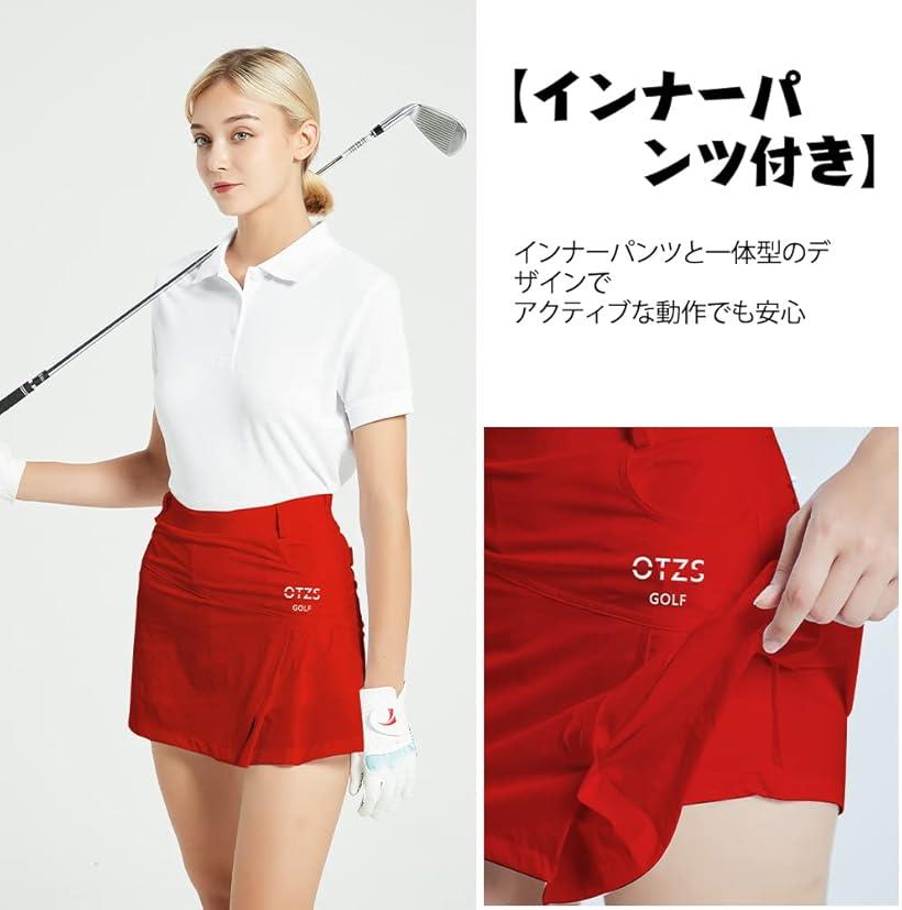 ゴルフスカート レディース ゴルフウェア テニス スコート おしゃれ インナーパンツ付き ポケット付き 吸汗速乾 アクティブスカート (レッド, S)