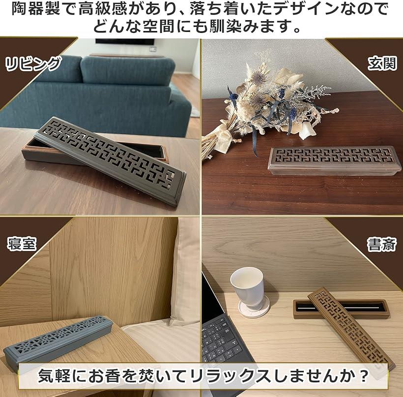 【楽天ランキング1位入賞】お香立て 風水 金運 横置き ふた付き 安全 おしゃれ シンプル インテリア 飛び散らない 香炉 香皿 灰が飛ばない 陶器 インセンスホルダー ライトグレー (ライトグレー)