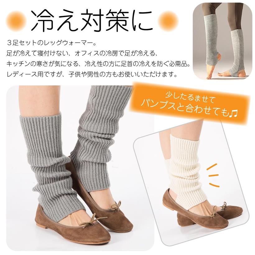 レッグウォーマー レディース 冷え対策 靴下 3足セット ヨガソックス 防寒 足首ウォーマー オフホワイト (オフホワイト, Free Size)