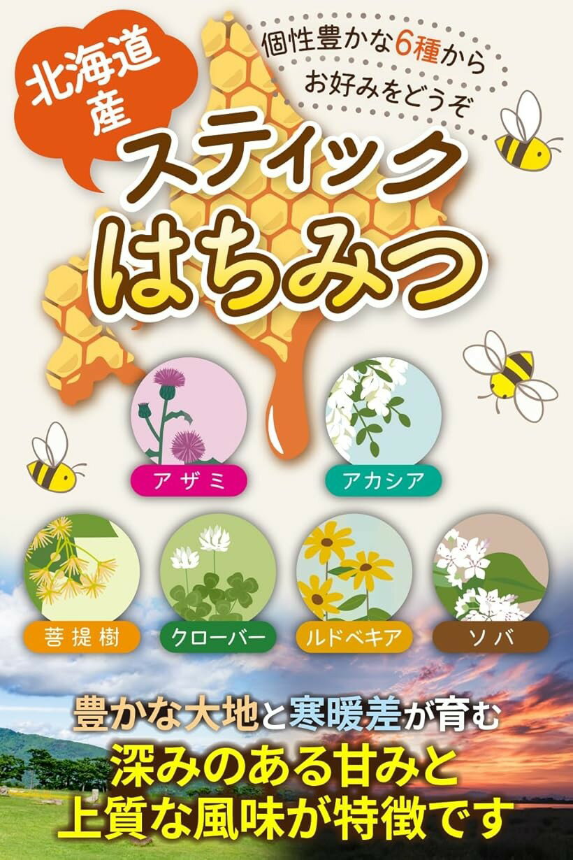 北海道産 ハチミツ スティック 生はちみつ 美味しい喉のケア 小分けで便利 個包装だから衛生的 いつでもどこでも 36本 x 2.5g 3種食べ比べセット アザミ&アカシア&菩提樹 (36本 x 2.5g)