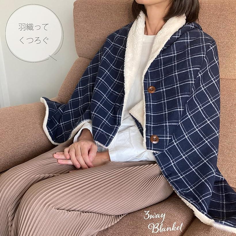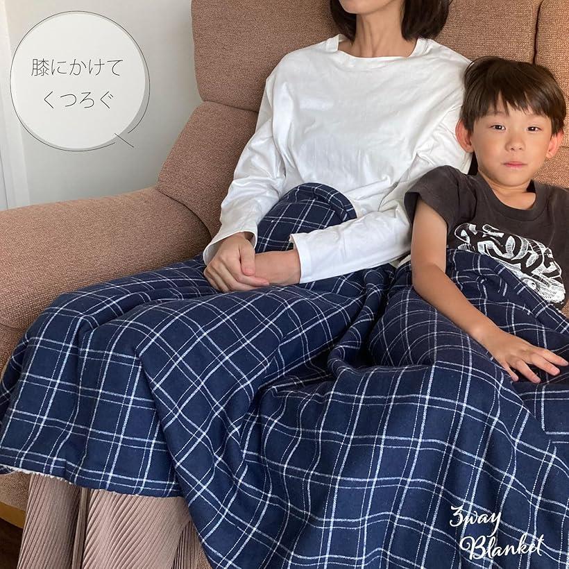 ノア スリーウェイブランケット ひざ掛け ハーフケット ポンチョ 腰巻き 80cmx130cm ネイビー (ネイビー, ハーフ)