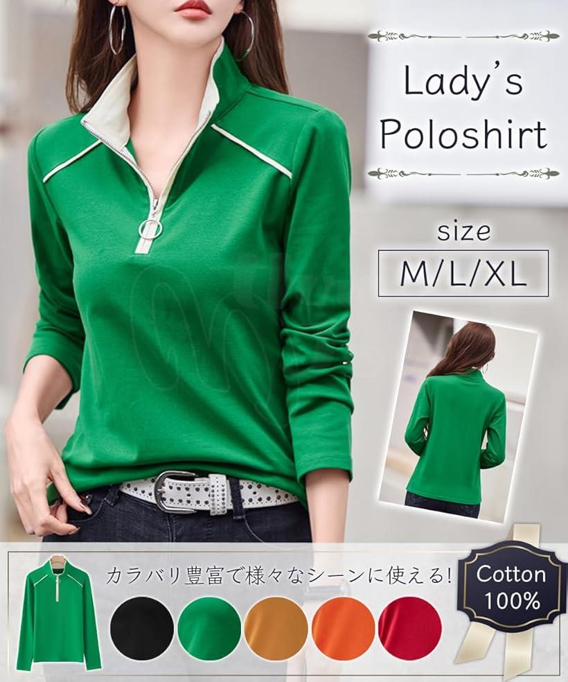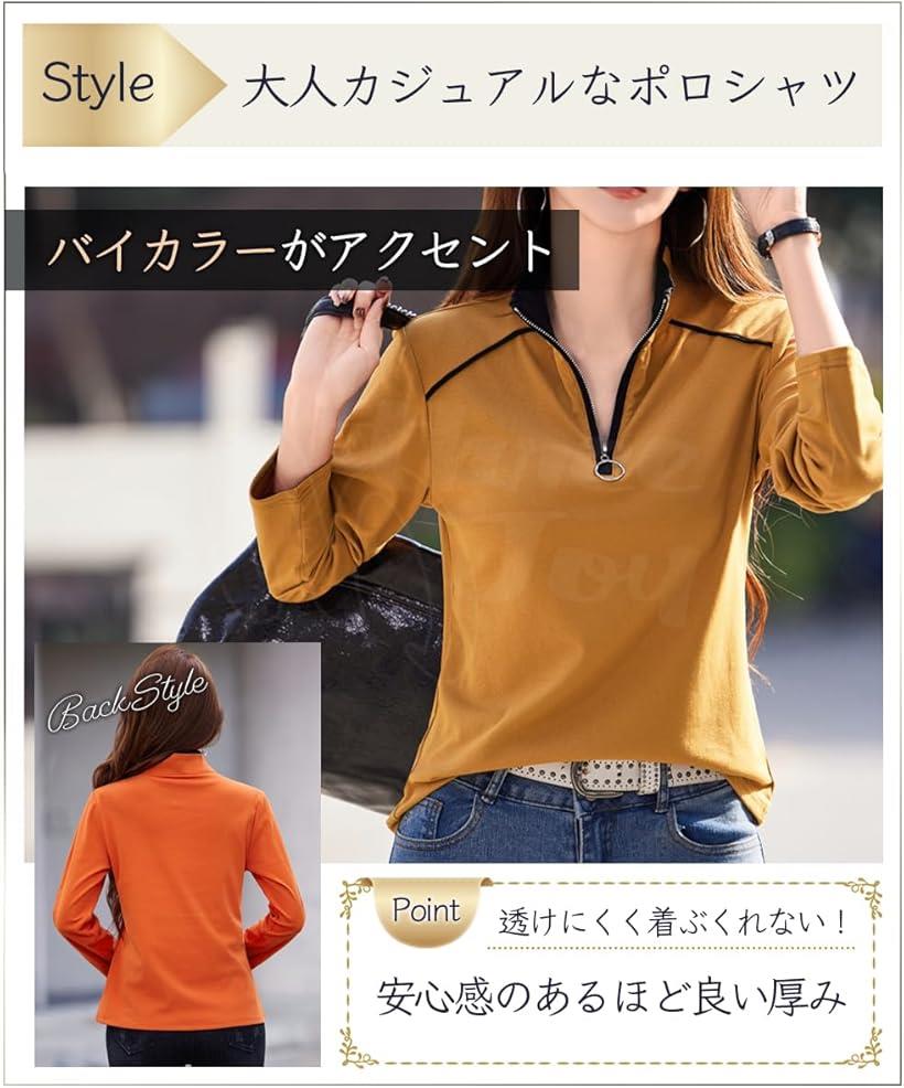 ポロシャツ レディース 長袖 カットソー おしゃれ オフィス カジュアル (イエロー, L)