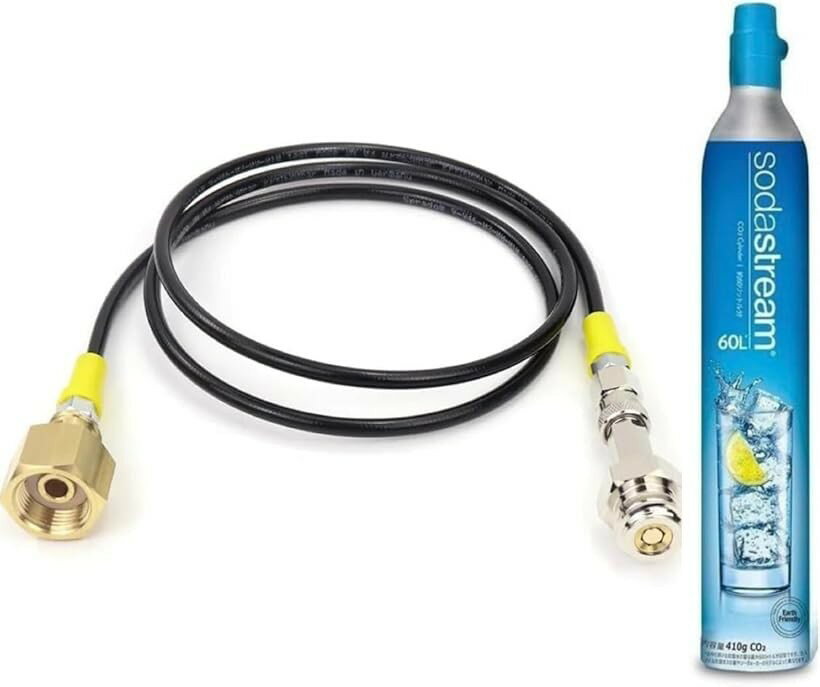 【楽天ランキング1位入賞】ソーダマシン用125cm直結ホース 予備パッキン付き ブルーシリンダー用 (黒)
