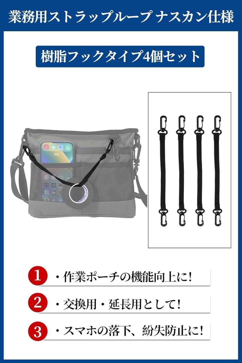ストラップループ 業務用 作業用 ナスカン仕様 4個セット テープループ バッグ取り付けベルト 手提げ ショートストラップ ポーチ スマホ 交換用 延長用 持ち手(ブラック(樹脂フック), 26cmx4個)