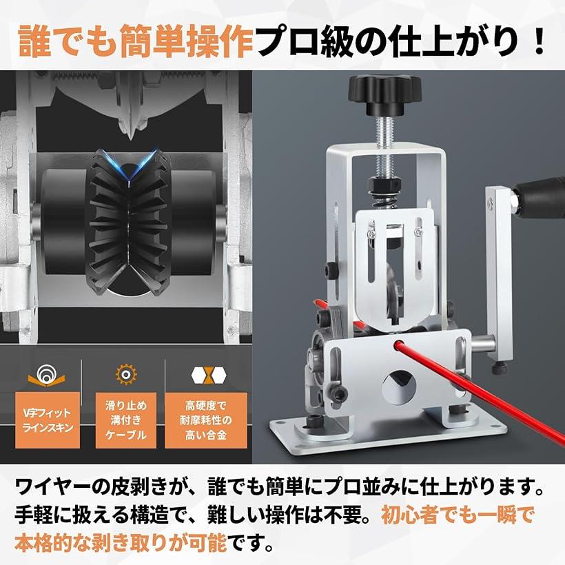 バリエーションコード : 2b9xygcthi商品コード2b9xygw3jr商品名ワイヤーストリッパー 電線皮むき工具 ケーブル 皮むき 手動 電線皮むき機 剥線機 小型 卓上固定 1mm-21mmブランドPLEAVITカラーシルバー 1-21mm「簡単操作で快適」 シンプルな設計により、ワイヤーの皮剥きが驚くほど簡単。ワイヤーを挿入して位置を合わせ、ハンドルを回すだけで操作できます。初心者でも直感的に使えるので、誰でもスムーズに作業開始が可能です。使い方がわかりやすく、安心して操作できます。「滑らかな剥き取り」 鋭い刃と複数の固定機能により、ワイヤーが滑ったりずれたりすることを防ぎながら皮を剥けます。芯線を傷つけることなく、精密な剥き取りを実現。スムーズに作業できるため、作業効率がアップし、時間を無駄にしません。「幅広い対応範囲」 さまざまなサイズのワイヤーに対応。ブレードの高さを調整できるので、細い線から太い線まで自在に扱えます。電線リサイクルや幅広い被覆ケーブルの皮剥き作業に最適な性能を発揮し、多用途で便利です。「高耐久性」 耐久性の高い素材と厚みのあるアルミブロック構造により、長寿命で安定した使用が可能。さらに、合金鋼製の厚い刃を採用しているため、刃の寿命も長く、交換が容易。長期間安心して使えます。「豊富なカスタマイズ機能」 テーブルに固定するための穴が開けられ、安定性が抜群。さらに、電動ドリルやモーター(別売)を取り付けて自動化することも可能です。作業スタイルや必要に応じて自由にカスタマイズでき、効率的な作業が実現します。※ 他ネットショップでも併売しているため、ご注文後に在庫切れとなる場合があります。予めご了承ください。※ 品薄または希少等の理由により、参考価格よりも高い価格で販売されている場合があります。ご注文の際には必ず販売価格をご確認ください。※ 沖縄県、離島または一部地域の場合、別途送料の負担をお願いする場合があります。予めご了承ください。※ お使いのモニタにより写真の色が実際の商品の色と異なる場合や、イメージに差異が生じることがあります。予めご了承ください。※ 商品の詳細(カラー・数量・サイズ 等)については、ページ内の商品説明をご確認のうえ、ご注文ください。※ モバイル版・スマホ版ページでは、お使いの端末によっては一部の情報が表示されないことがあります。すべての記載情報をご確認するには、PC版ページをご覧ください。「初心者からプロまで誰でも簡単に扱える手動剥線機 ワイヤーストリッパー。」シンプルな操作性と高い安全性を兼ね備え、ワイヤーを挿入してハンドルを回すだけで効率的に皮を剥くことができます。特に滑り防止機能により、芯線を傷つけずに高精度の剥き取りが可能。幅広いサイズのワイヤーに対応しており、ブレードの高さ調整も簡単。さらに、耐久性の高い素材とカスタマイズ機能により、長寿命かつ安定した作業が可能です。電動ドリルやモーターを取り付けて自動化も可能なので、幅広い用途に活用でき、作業効率が大幅に向上します。電線リサイクルや皮剥き作業をより快適に行える、非常に便利なアイテムです。*モニター環境等によって色の見え方に若干差が生じる場合がございます。*取扱い説明書等は付属致しません。*サイズや重量数字は目安です。商品により若干の誤差がございます。