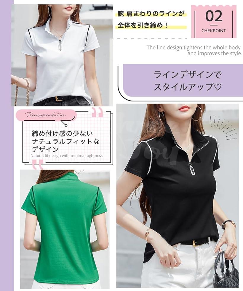 ポロシャツ レディース 半袖 ゴルフ ゴルフウェア 大きいサイズ 綿 スポーツ おしゃれ オフィス ハーフジップ (グリーン, M)