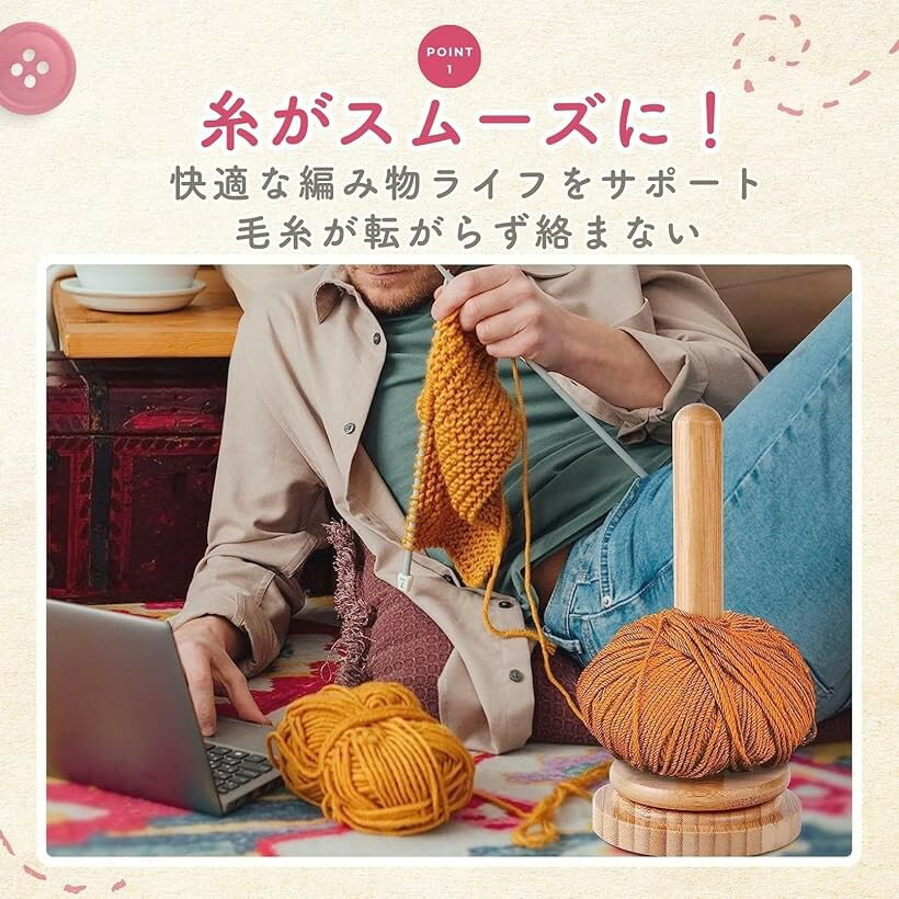 【楽天ランキング1位入賞】ヤーンホルダー 木製 回転 毛糸 吊り下げ 編み物 毛糸玉 ヤーンスタンド コーン巻き 編み物ツール (1個)