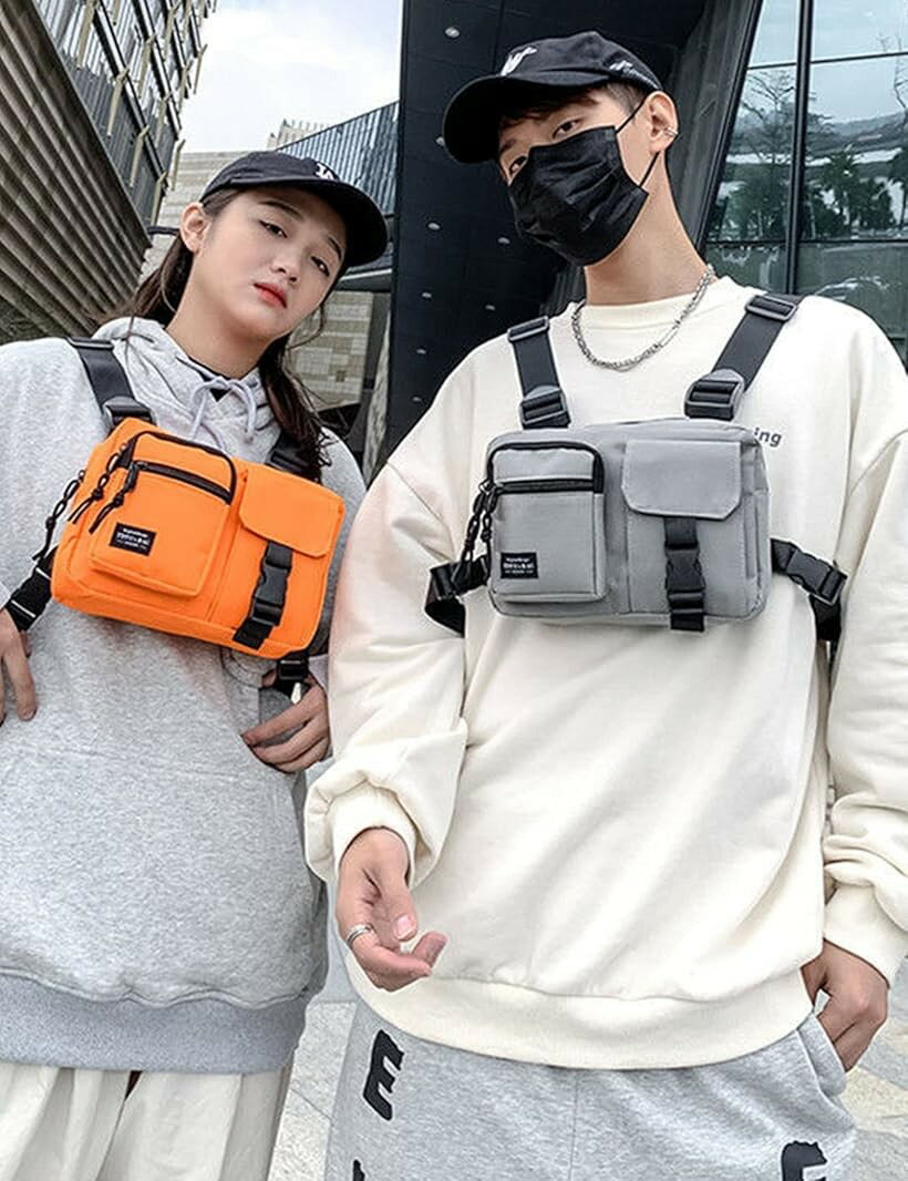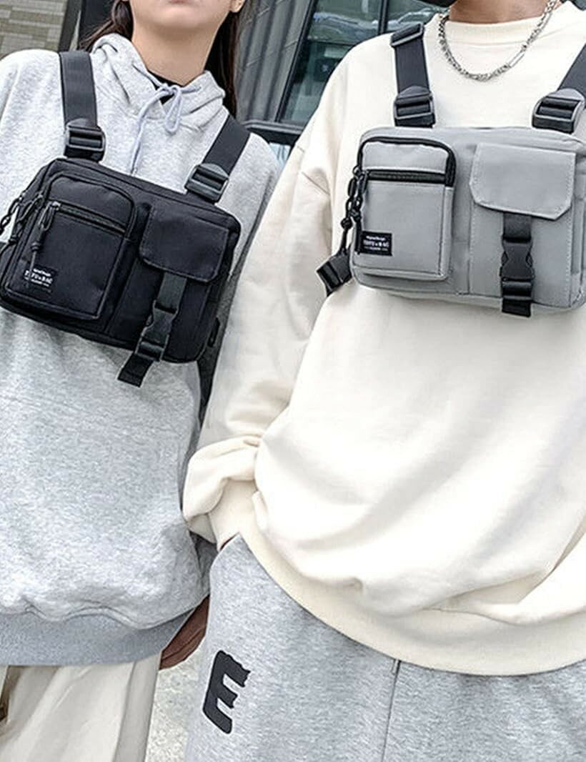 チェストバッグ 釣り 登山 スノボ ランニング バイク 撮影 ベストバッグ (小型チェストバッグ-ブラック, Free Size)