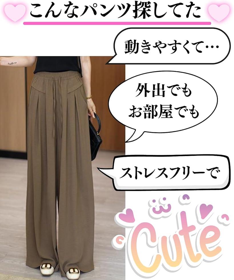 ストレスフリー ワイドパンツレディース ズボン マキシ丈 オフィスカジュアル サルエルパンツ イージーパンツ 夏 (ブラック, L)