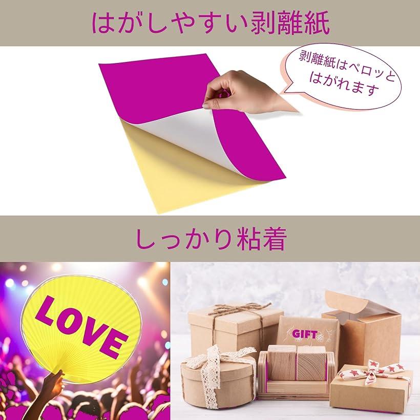 バリエーションコード : 2bu03k4ktc商品コード2bu03k4ktc商品名カラーシール A4 シール用紙 ノーカット 光沢 フリーカット 手作り うちわ カラーシート 粘着 お徳用 大袋 50枚ブランドレタヤカラー紫「光沢が美しい。フリーカットで自由自在なA4カラーシール50枚」 手作りうちわやDIYギフトに最適なA4サイズのノーカット光沢カラーシールが50枚入りのお得な大袋セットです。光沢紙なので印刷面が美しく仕上がり、あなたの作品を一層際立たせます。フリーカットなので、好きな形やサイズに自由にカットでき、アイデア次第で可能性が広がります。応援うちわやコンサートグッズなど様々なイベントで大活躍します。「印刷対応でオリジナルデザインも簡単作成」 レーザープリンターでの印刷が可能で、インクジェットプリンターの場合は裏面にラインを書いてカットすることで、手軽にオリジナルデザインのシールを作成できます。イベントのロゴやメッセージ、イラストなどを鮮明に印刷し、あなただけの特別なアイテムを作り上げましょう。屋内での使用に最適で、工作用やDIY素材としても幅広くお使いいただけます。「剥がしやすく、しっかり貼れる。高い粘着力」 このカラーシールは、剥がしやすい加工が施されているため、作業効率が格段にアップします。一方で、一度貼るとしっかり固定される粘着力も兼ね備えているため、大切な作品が剥がれてしまう心配がありません。カットしやすく、スムーズに作業を進められるので、DIY初心者の方にもおすすめです。「多用途に使える。イベントから日常まで活躍」 コンサートうちわや応援グッズ作りはもちろんのこと、誕生日や記念日のDIYギフト、パーティーの飾り付け、お子様の工作など、様々なシーンで活躍します。発色の良い光沢シートが、あなたの創造力を形にするお手伝いをします。お徳用なので、イベントなどで大量に使用する際にも便利です。「製品仕様」 サイズ:A4(210mmx297mm)。内容量:50枚。タイプ:ノーカット、光沢、粘着シート。印刷対応:レーザープリンター可、インクジェットプリンター(裏面推奨)。用途:応援うちわ、コンサート、推し活グッズ、工作、DIYギフト、屋内用。特徴:カットしやすい、剥がしやすい、しっかり貼れる。※ 他ネットショップでも併売しているため、ご注文後に在庫切れとなる場合があります。予めご了承ください。※ 品薄または希少等の理由により、参考価格よりも高い価格で販売されている場合があります。ご注文の際には必ず販売価格をご確認ください。※ 沖縄県、離島または一部地域の場合、別途送料の負担をお願いする場合があります。予めご了承ください。※ お使いのモニタにより写真の色が実際の商品の色と異なる場合や、イメージに差異が生じることがあります。予めご了承ください。※ 商品の詳細(カラー・数量・サイズ 等)については、ページ内の商品説明をご確認のうえ、ご注文ください。※ モバイル版・スマホ版ページでは、お使いの端末によっては一部の情報が表示されないことがあります。すべての記載情報をご確認するには、PC版ページをご覧ください。