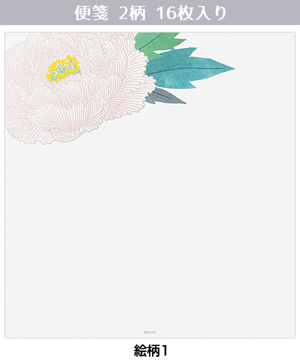 レターセット 冬柄 シルク 寒牡丹柄 81006/81007 (14) 便箋16枚(2柄)・封筒6枚 ミドリ 「紙」シリーズ 伊予和紙
