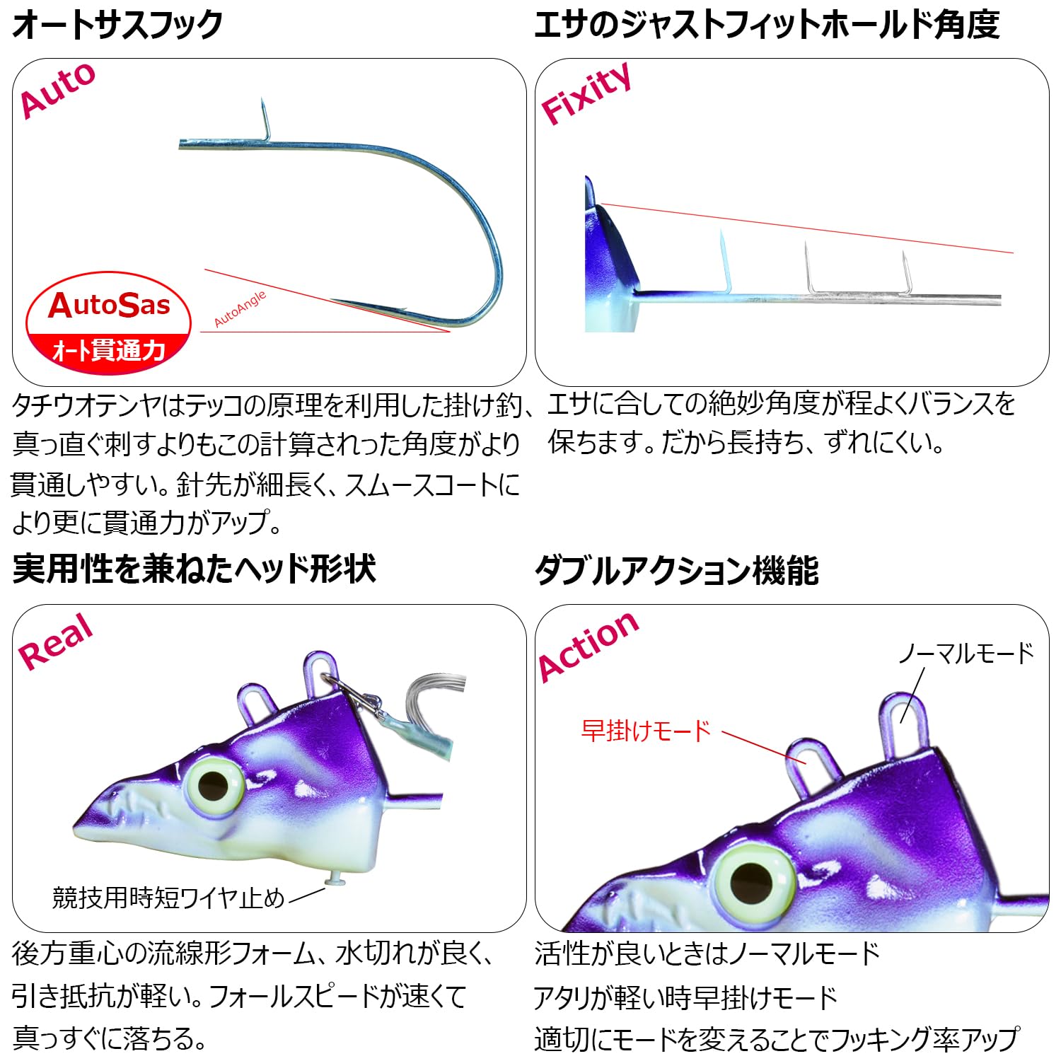 【送料無料】[ELPIS] タチウオテンヤ ガツガツドラゴン シングルフック 40号 太刀魚 船 エルピス (四色セット)