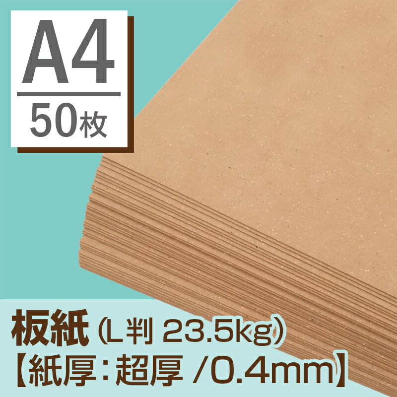 【メール便発送】板紙 A4 (L判23.5kg)【紙厚:超厚(約0.4mm)】【Sセット・50枚】特厚クラフト紙より厚い!