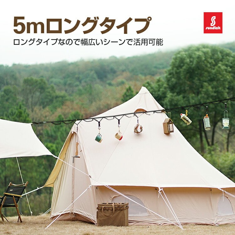 SUNDICK ハンギングチェーン 5m 収納袋付 キャンプ物掛けロープ ベルクロループ付き MOT-SDKRP500C