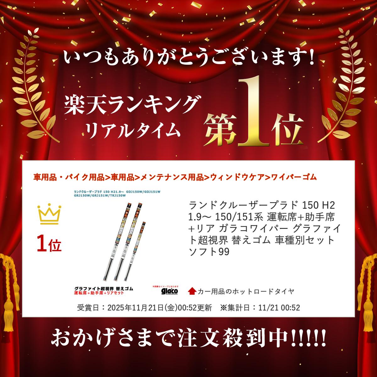【楽天ランキング受賞】 ランドクルーザープラド 150 H21.9〜 150/151系 運転席+助手席+リア ガラコワイパー グラファイト超視界 替えゴム 車種別セット ソフト99