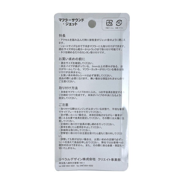 クリエイト マフラーサウンド・ジェット 排気音 トラックOK 34mm以上 長さ8cm以上 下向き対応 簡単取付 X547