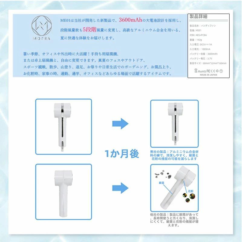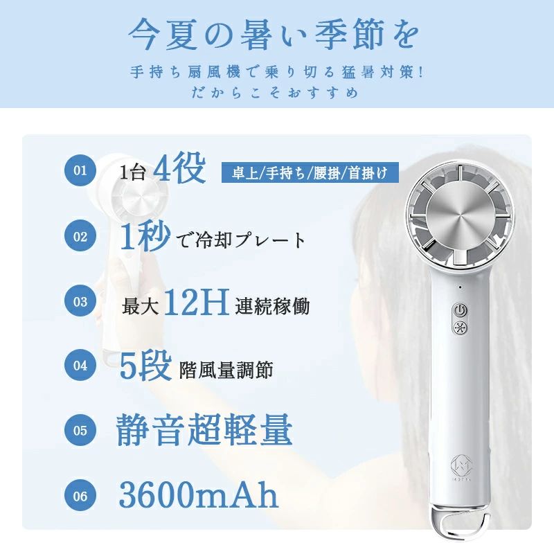 冷却プレート付 3600mAh 5段階風量 強風 2024最新 ミニファン 携帯扇風機 手持ち 卓上 静音 USB充電