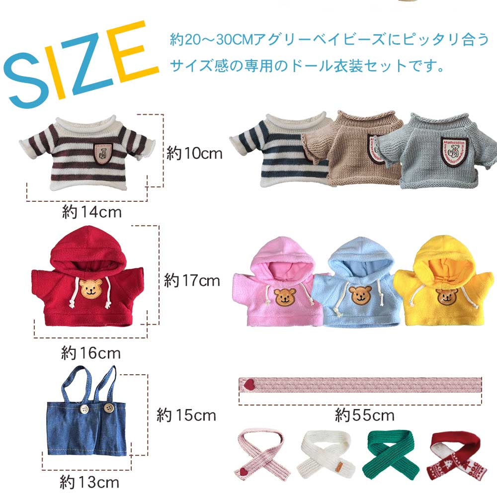 アグリーベイビーズ ぬいぐるみ 服 4点セット パーカー ニット ズボン マフラー おしゃれ 可愛い ぬい活 30cm ビッグ 人形 着せ替え グッズ