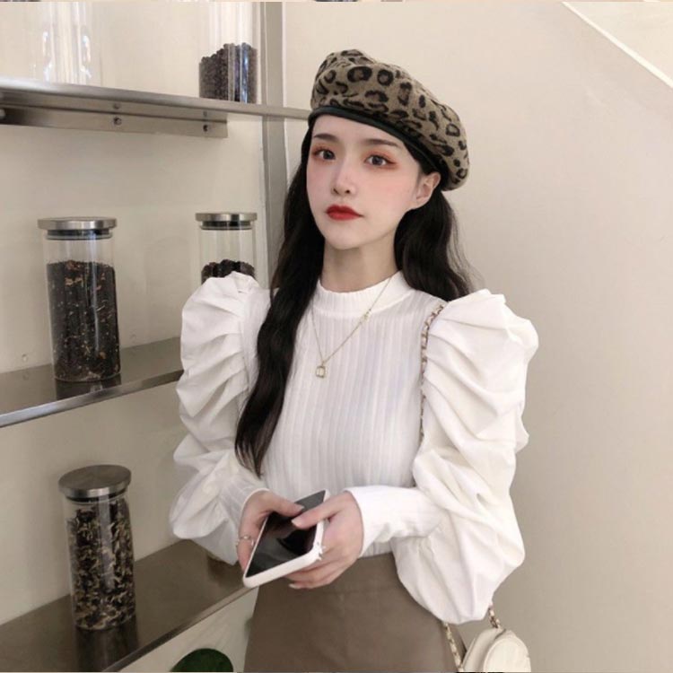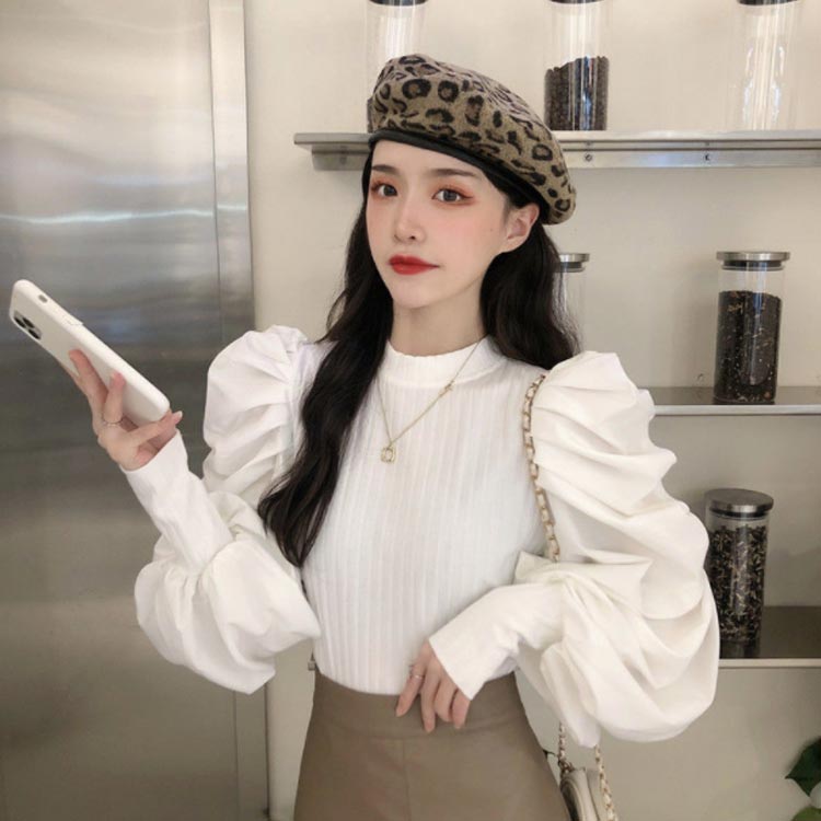 セーター プルオーバー ニット ボリュームスリーブ トップス レディース シャツ ブラウス ぽわん袖 通勤 異素材 レイヤード風 タートル 大人 可愛い きれいめ 通学 長袖