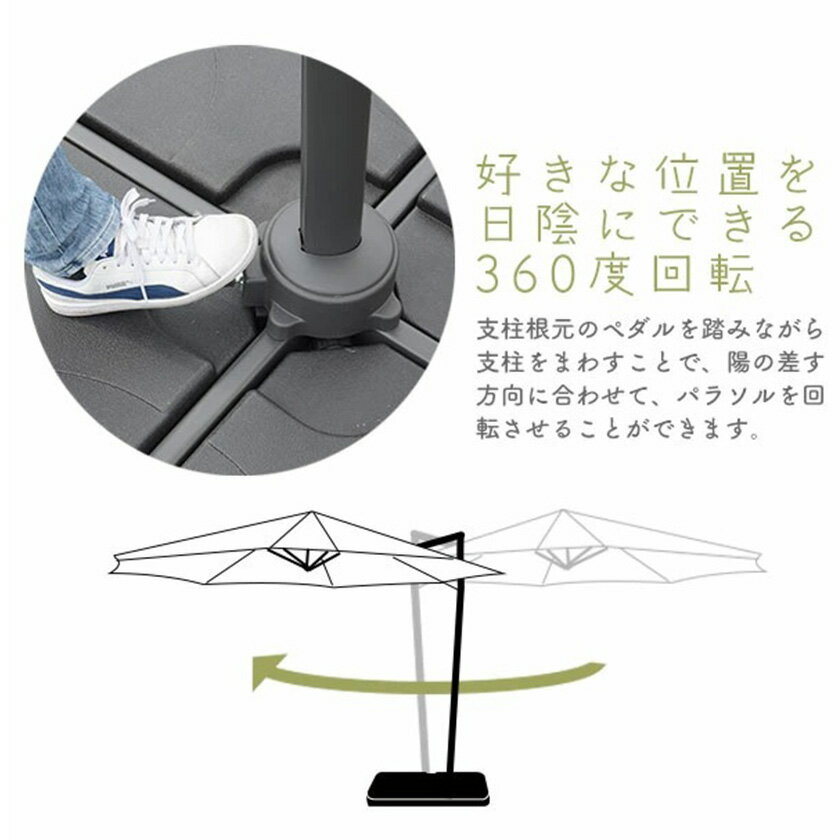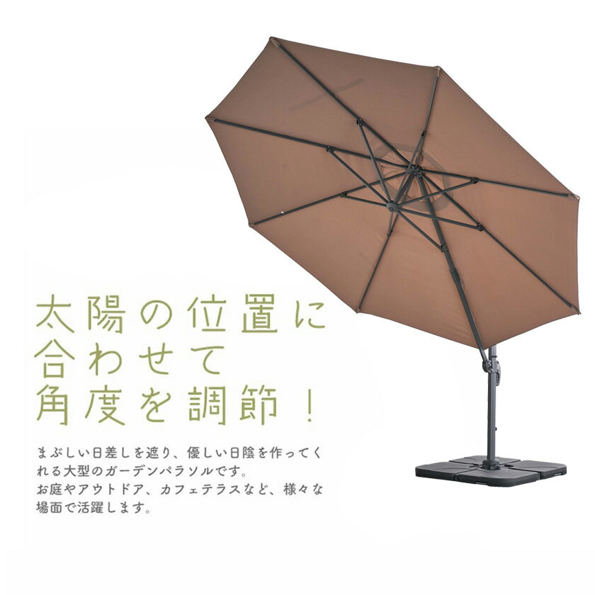 UVカット 吊り下げ式 ガーデンパラソル 大型 ハンギングパラソル 角度調整 ウッドデッキ スタンド 回転 庭 店舗 ハンドル 日除け 水タンク 自立
