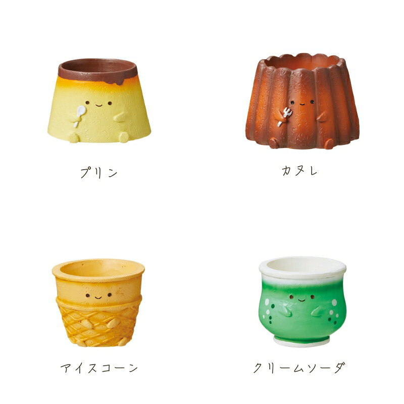 【リトルレジンポット 喫茶店スイーツシリーズ/6個セット】ポリレジン樹脂 植木鉢 1号 まとめ買い ガーデニング プラントポット お庭 インテリア 小物入れ 置物 アニマル 観葉植物 多肉植物 フラワーアレンジメント 洋菓子 プリン カヌレ アイス ソーダ