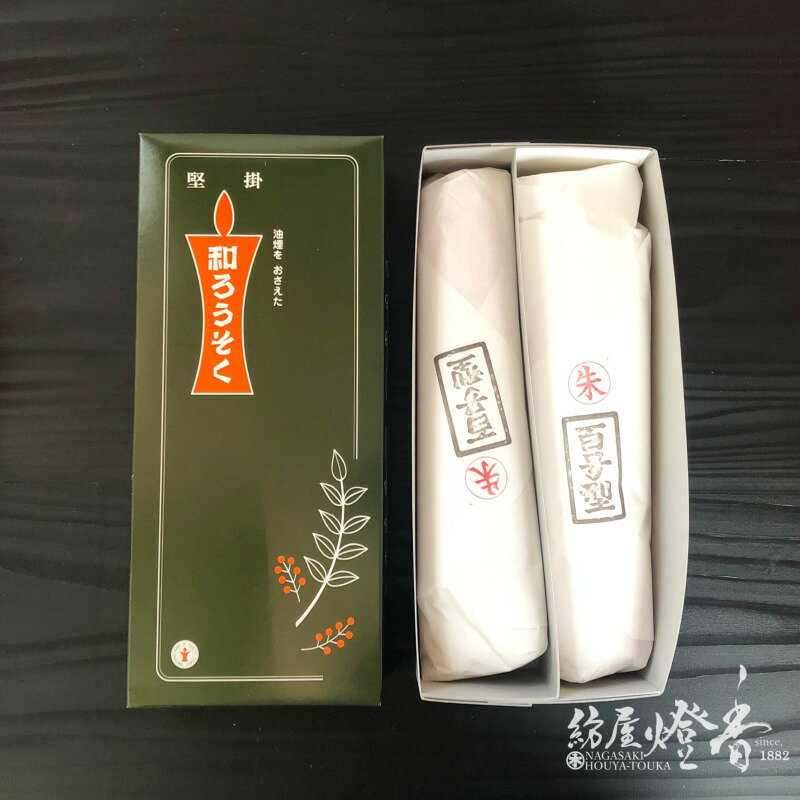 【特徴】 高澤商店謹製/油煙をおさえた手作り和蝋燭 石川県七尾市にある和ろうそくの老舗「高澤ろうそく店」。 「和ろうそく」の特徴は「芯」と「原料」にあります。 「芯」は、筒状にした和紙の上から灯芯を手巻し、ひとつひとつ作ります。 この芯は 先までが空洞になっているので燃えている間も常に、灯芯から吸い上げたロウと酸素が供給されます。 これにより和ろうそく独特の明るくしっかりとした炎となり、力強く風にも強いものとなります。 「原料」には、櫨(はぜ)や ヤシなどの植物性のものを主原料に使っているので、環境にも人にも動物にも優しい ろうそくです。 ※灯芯とは、藺草(いぐさ)の、外側を取り除いた真ん中の部分で、ふんわりとした、スポンジ状のもの。 和ろうそくは様々なサイズ・形状のものをご用意しております。 『高澤ろうそく【全ラインナップ】』 『和蝋燭【燃焼時間から選ぶ】』 【商品詳細】 商品名:日本の灯り・和ろうそく 【朱(赤)/イカリ型/100号】 メーカー:高澤ろうそく 形状:和蝋燭/和芯/イカリ型/1箱 ローソク寸法:長さ(芯含)26cm ×上部直径7cm×下部直径長4.5cm 火立用穴寸:約10mm 燃焼時間:約8時間 本数:2本 パッケージ:紙箱 箱サイズ:縦29.2cm×横12.5cm×高さ7.3cm高澤商店謹製/油煙をおさえた手作り和蝋燭 石川県七尾市にある和ろうそくの老舗「高澤ろうそく店」。 「和ろうそく」の特徴は「芯」と「原料」にあります。 「芯」は、筒状にした和紙の上から灯芯を手巻し、ひとつひとつ作ります。 この芯は 先までが空洞になっているので燃えている間も常に、灯芯から吸い上げたロウと酸素が供給されます。 これにより和ろうそく独特の明るくしっかりとした炎となり、力強く風にも強いものとなります。 「原料」には、櫨(はぜ)や ヤシなどの植物性のものを主原料に使っているので、環境にも人にも動物にも優しい ろうそくです。 ※灯芯とは、藺草(いぐさ)の、外側を取り除いた真ん中の部分で、ふんわりとした、スポンジ状のもの。 和ろうそくは様々なサイズ・形状のものをご用意しております。 『高澤ろうそく【全ラインナップ】』 『和蝋燭【燃焼時間から選ぶ】』