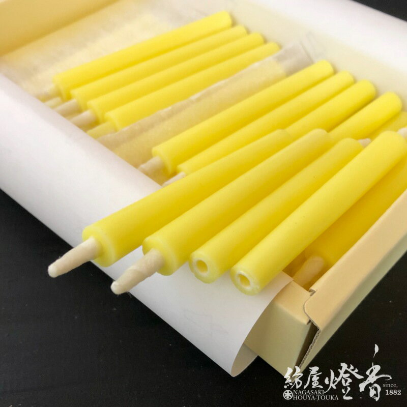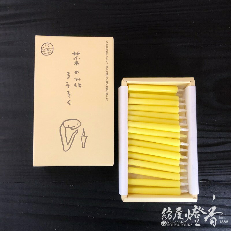 菜の花ろうそく 1号 棒型 45本入 燃焼30分 高澤ろうそく / 和ろうそく 和蝋燭 菜の花蝋 自然 寺院 お寺の灯 伝統 灯篭 灯籠 日本の灯り 和ローソク 和芯 風に強い 耐風 油煙が少ない ススが少ない 石川 手作り 天然 本和蝋 ローソク 日本製 国内生産 紡屋燈香 ほうやとうか