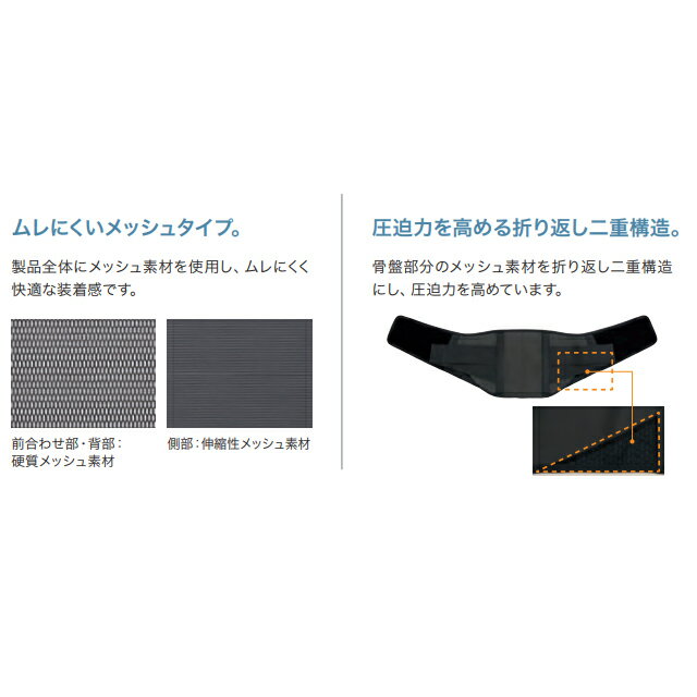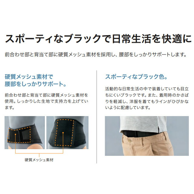●背当て部と前合わせ部に硬質メッシュ素材を採用し、腰部をしっかりサポート。 ●スポーティなブラック色。 ●製品全体にメッシュ素材を使用し、ムレにくく爽やかな装着感。 ●背部には2本のS字軽量ステーを採用し、支持力を向上。 ●腹腔圧上昇効果を高める補助ベルト付き。 一般名 腰部固定帯 サイズ(胴囲) SS:55cm~65cm S:65cm~75cm M:75cm~85cm L:85cm~95cm LL:95cm~105cm 3L:105cm~115cm 4L:115cm~125cm メーカー名 日本シグマックス株式会社 JANコード SS:4946452048428 S:4946452048435 M:4946452048442 L:4946452048459 LL:4946452048466 3L:4946452048473 4L:4946452048480 ※肌着や洋服の上からの装着をおすすめしております。素肌に直接装着されますと、汗などで商品が汚れる・傷みやすくなることがございます。 【検索関連キーワード】医療用腰痛ベルト シグマックス コルセット 骨盤サポート 腰サポーター 骨盤サポーター 腰ベルト 薄型 ギックリ デスクワーク テレワーク 在宅ワーク 立ち仕事 腰サポート 長距離 男性用 女性用 スポーツ用 ずれない 蒸れない 快適 歪み 腰当て 通気性 黒 コルセット 矯正 ケア 大きいサイズ 小さいサイズ 高齢者 レディース メンズ 子供 大人 スリム 猫背 解消 しっかり固定 フィット 予防 腰の痛み ヘルニア 腰椎 背骨 固定 腰負担 補助ベルト 簡単装着 ラテックスフリー ※肌着や洋服の上からの装着をおすすめしております。素肌に直接装着されますと、汗などで商品が汚れる・傷みやすくなることがございます。