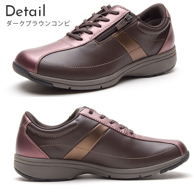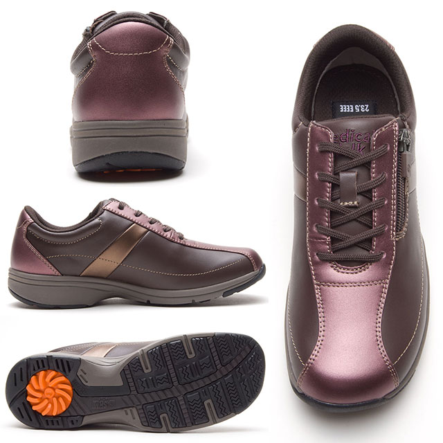 アサヒ メディカルウォーク LF(4E) ワイン/ブラック/ダークブラウンコンビ 21.5-25.0cm アサヒシューズ【レディース靴 婦人用 歩きやすい ウォーキングシューズ ひざの負担を軽減 レザー 本革 高級 外側ファスナー シンプル ミセス シニア 日常使い 疲れにくい】