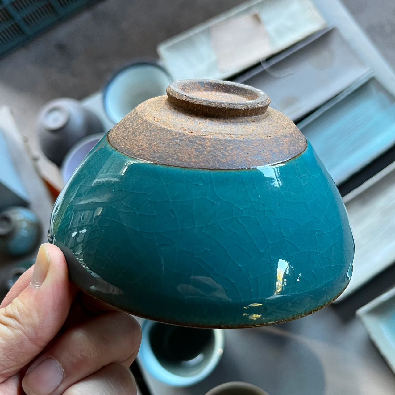 ピンク 平形抹茶碗 (黒箱...