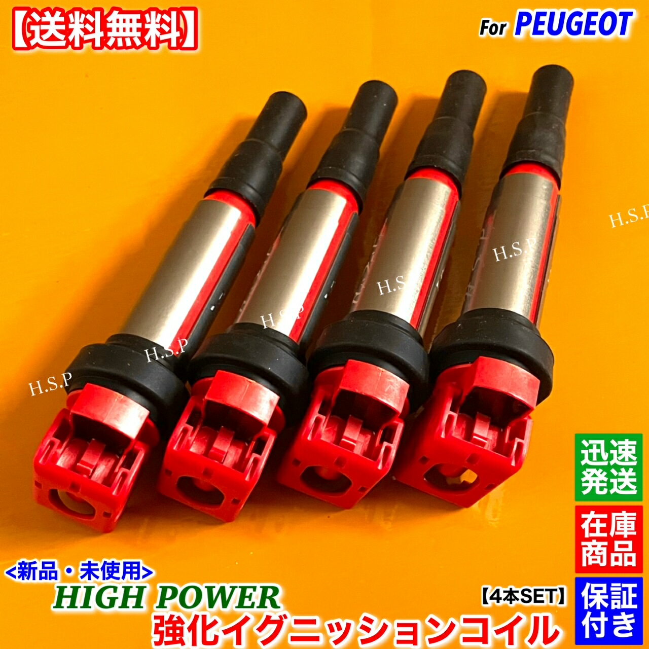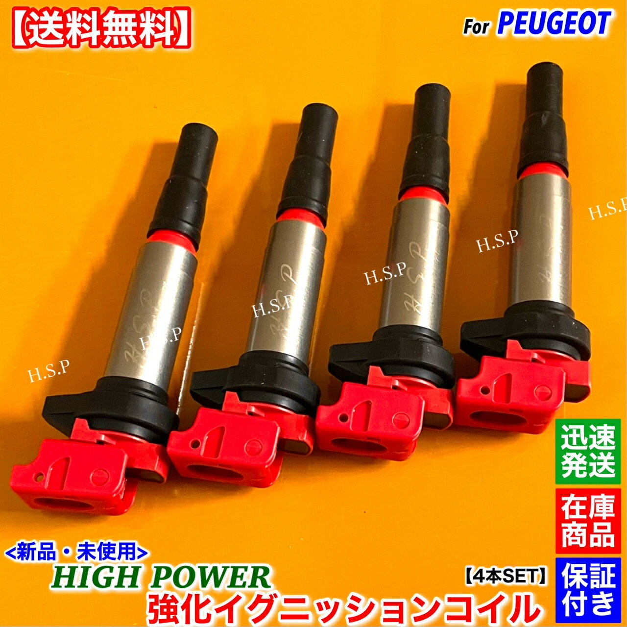 プジョー 新品 強化 イグニッションコイル 4本SET 308CC 1.6 308 1.6 RCZ 1.6 308AW 1.6 308SW 1.6 308 4A 4C 597064 597091 電装 高電圧 ハイパワー 失火 ミスファイア チェックランプ 交換 修理