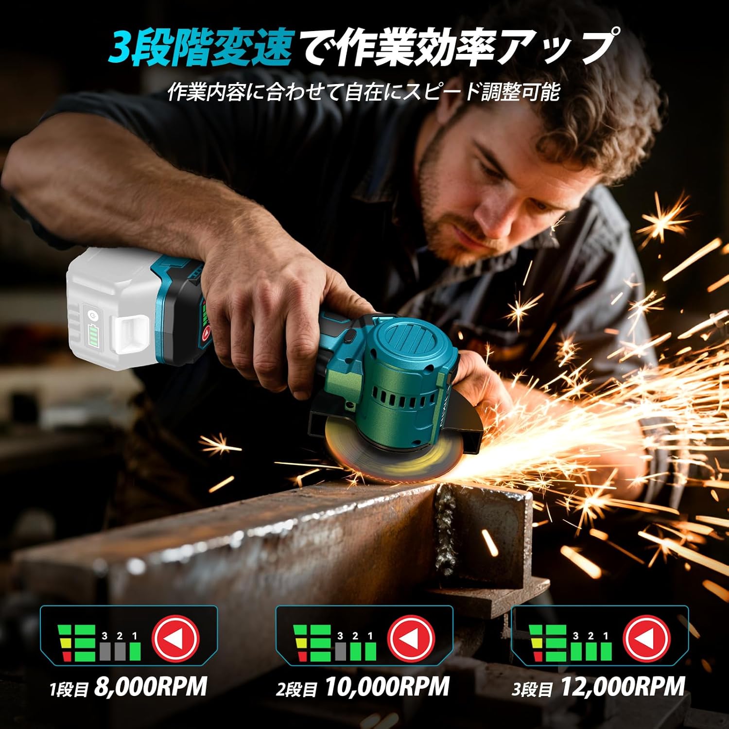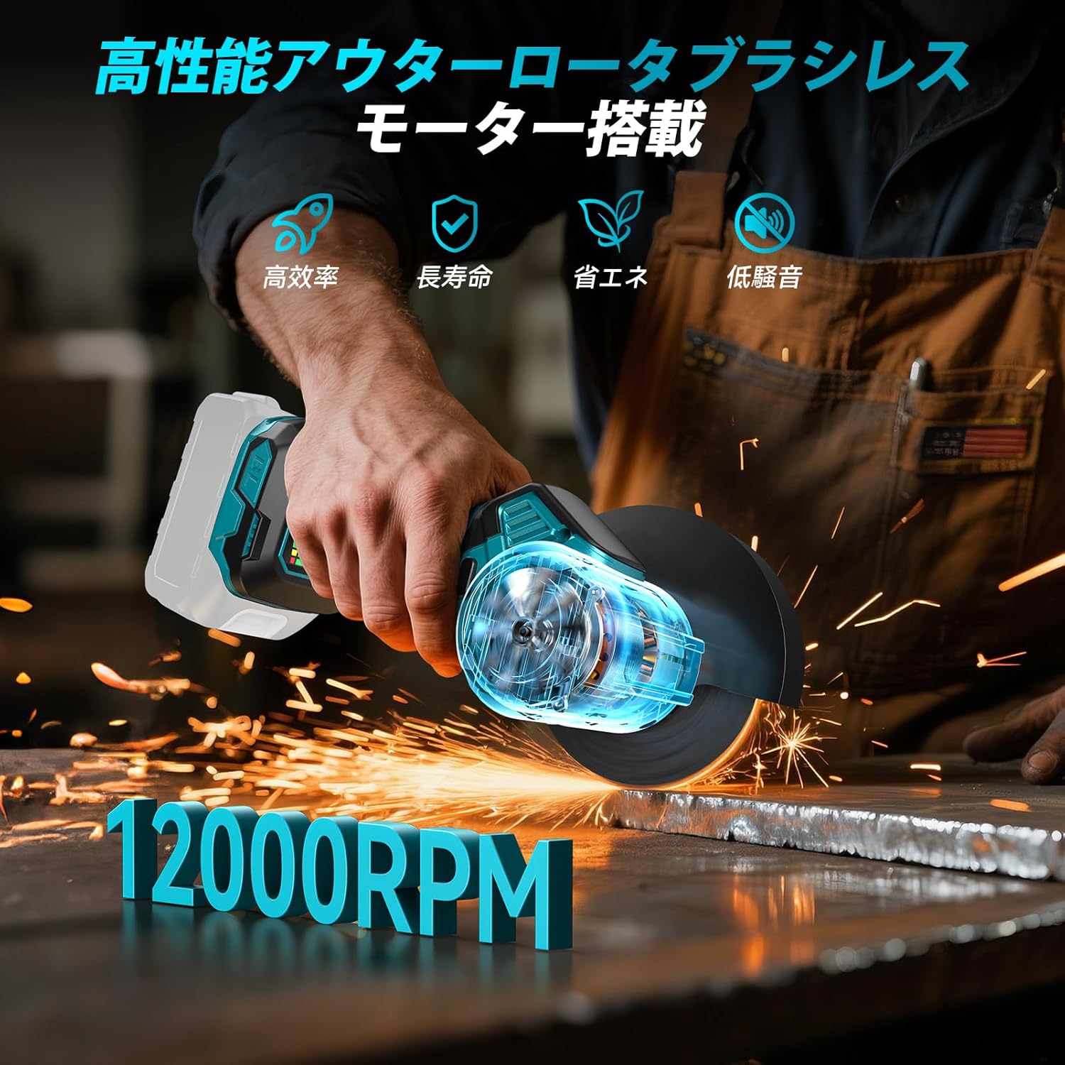 >【アウターローターブラシレスモーター搭載】:充電式ミニグラインダーG02は、高効率なアウターローターブラシレスモーターを搭載。アウターローター構造により、回転子が外側に配置されているため、回転慣性が大きく、より高い線速度と優れたトルク性能を実現。また放熱性にも優れており、安定したパフォーマンスを長時間持続します。電力消費を抑えつつパワフルに動作し、連続使用にも最適です。信頼性にも優れ、長期間の使用でも安定した性能を保ちます。さらに静音設計により、低騒音が求められる環境でも快適に作業可能です。ブラシの摩耗や交換が不要なため、メンテナンスの手間とコストを削減し、製品寿命を大幅に延ばします。 【3段階速度調整機能】:ワンタッチで回転数を3段階(8000RPM/10000RPM/12000RPM)に切り替え可能。作業内容や素材に応じて最適な速度を選ぶことで、効率的かつスムーズに作業を進められます。速度記憶機能も搭載しており、作業中でも現在の回転数を簡単に確認可能。用途に応じた回転数設定により、作業効率の向上はもちろん、刃の寿命を延ばし、コストパフォーマンスの高い作業を実現します。 【正逆転両用機能】:本製品は正転・逆転の両方向に対応しており、さまざまなシーンでの作業に柔軟に対応できます。正回転では金属や木材などの切断作業に最適。逆回転に切り替えることで、溝や狭い場所に溜まった削りカスや粉塵の除去、軽度なバリ取りや清掃作業にも便利に使えます。作業内容に応じて回転方向を切り替えることで、より安全かつ効率的に作業を進めることができます。 【小型・軽量ボディのミニカッター】:本製品は、わずか0.8kgの小型・軽量設計で、長時間の作業でも手首や腕への負担を大幅に軽減します。一般的なグラインダーに比べてコンパクトなため、エンジンルーム内や狭所での作業、精密な部品加工など、入り組んだ場所や細かな作業にも最適です。また、軽量で持ち運びがしやすく、省スペースで収納できるため、現場での移動や限られた作業スペースでも快適にご使用いただけます。 【本体のみ&18Vバッテリー対応】:「すでにバッテリーをお持ちのお客様の声」にお応えして、本製品は本体のみをご用意しました。Elikliv製バッテリーはもちろん、マキタ互換のBL1820B、BL1830B、BL1840B、BL1850B、BL1860Bにも対応。お手持ちの18Vバッテリーをそのままご使用いただけます。コードレスなので、電源コードを気にせず、屋外や電源の取りにくい場所でも快適に作業が可能です。 【注意事項】: ・当店の商品は全て国内から配送されます。 ・国内配送の商品は国内でのお買い物と同じく消費税が発生いたします。関税はかかりません。 *色がある場合、モニターの発色の具合によって実際のものと色が異なる場合がある。