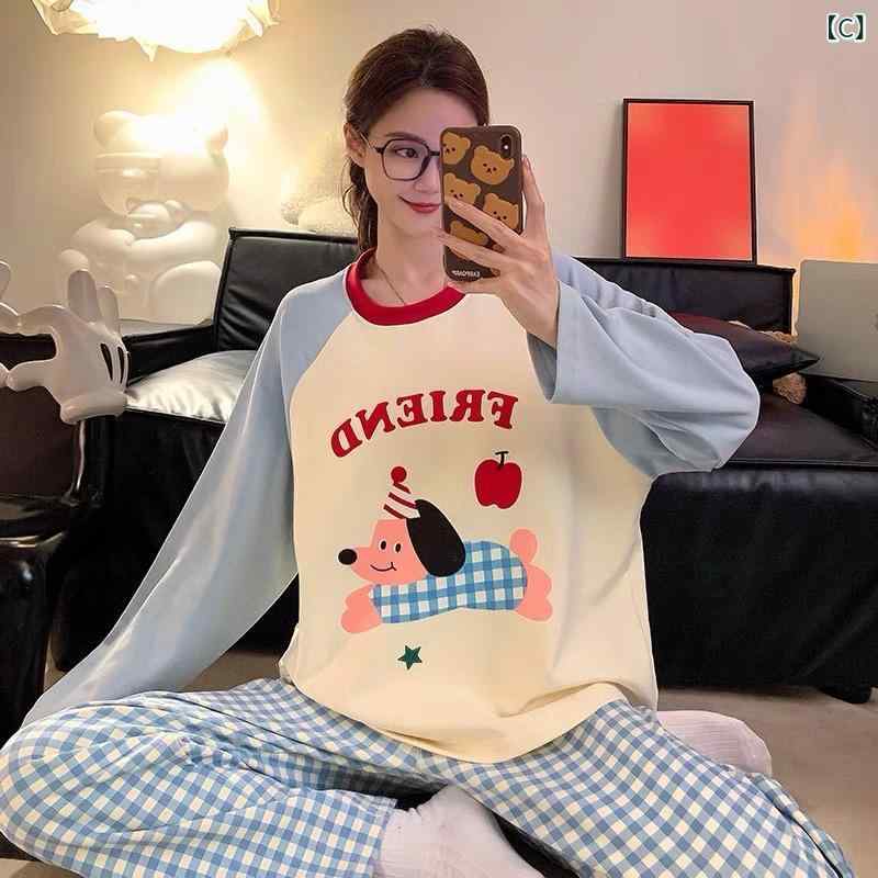 パジャマ カップル ペアルック パジャマ メンズ レディース 男女兼用ルームウェア ペアパジャマ 夏 フェイク 綿 長袖 ズボン カップル パジャマ レディース 春秋 ラウンドネック スーツ ライブ ホーム 服 男性用