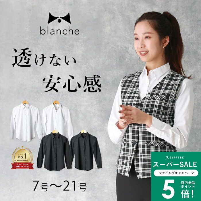 blanche レディースレギュラーカラー/スキッパーシャツ【2着までメール便で送料無料!】(3点以上の場合容量オーバーの為メール便不可【3着以上なら宅配便でも送料無料!】当店から新たにレディースシャツブランドがデビュー!シンプルなデザインは着回しもしやすく、スカートにもパンツスタイルにも合わせやすくなっています。清潔感のあるホワイトカラーは就職活動などのシーンにはもちろん、学生の方の洗い替え用のシャツとしても便利な一枚に。オフィスカジュアルスタイルに合わせていただくのにぴったりです。飲食店などのユニフォームとしてもご利用していただきやすいサイズ展開と価格でご提供しております。生地には綿40%、ポリエステル60%の綿ポリ混紡生地を採用。綿による適度な通気性・吸湿性を持ち合わせつつ、ポリエステルの丈夫さ・しわになりにくさを活かした扱いやすい生地になっております。生地密度アップで透けない(透けにくい)のがうれしい。【レギュラーカラー】どんなシーンにも対応できるスタンダードなレギュラーカラーシャツ。オフィスカジュアルスタイルに合わせるのにはもちろん、学生さんの洗い替え用のシャツとしても最適。リクルートやフォーマルなど、一枚持っていればどんなシーンにも着ていただけます。7号から21号までの豊富なサイズ展開もうれしいポイントです。【開襟(スキッパー)タイプ】開襟(スキッパー)タイプのシャツは顔回りをすっきりさせ、爽やかで女性らしい印象にしてくれます。ジャケットに相性がよく、社外の人とよく顔の合わせる機会のある営業職の方などにおすすめです。爽やかな色のニットや軽い素材のジャケットに合わせればオフのきれいめスタイルにも。※お洗濯の際はネットに入れての洗濯をおすすめいたします。洗濯後は絞らずに吊り干しが理想的ですが、雫が垂れて気になる場合は10〜15秒ほどの軽い脱水をかけてから形を整えて干してください。小じわが気になる場合は軽くアイロンがけをお願いいたします。[レディース ワイシャツ ブラウス レディースシャツ]型番LDX10-01 LDX12-01 LDX10-04 LDX12-04商品情報・シングルカフス・スペアボタン・レギュラーカラー・胸ポケット×1(レギュラー襟のみ)・開襟タイプ(スキッパーカラー)※開襟タイプに胸ポケットはございませんサイズ・素材・カラー8サイズ展開 7号/9号/11号/13号/15号/17号/19号/21号綿40% ポリエステル60%白(ホワイト)・黒(ブラック)無地付属品-メーカー希望小売価格はメーカーカタログに基づいて掲載しています店用管理番号gp2gp1wc1cb1sc1sc2sk1tn1tn2cf1nk1nk2nk3nk4nk5nk6nk7bs1bs2bg1be1be2mb1mb2sn1sn2sn3sn4sn5sn6sn7sn8sn9si1si2si3si4si5si6si7si8si9sr1sk3sk2hs1ld1ys1ck1kh1ss1nk8nk9na1nka1ks1配送情報最強配送対応商品(在庫があれば、土日祝も14時までは即日出荷)※臨時休業は除く。詳しくはお届け先を設定のうえ、配送予定をご確認ください。この商品のお問い合わせ番号SBR-item-41255スマートビズはビジネスアパレル専門店です。おしゃれなデザイン性はもちろん、働くビジネスパーソンのために機能性も重視しています。皆様のライフスタイルに沿ったご提案を心がけ、迅速丁寧なお客様サポートを行ってまいります。またスマートビズはレディースワイシャツ(レディースシャツ・ブラウス)の販売も行っております。一番ベーシックなレギュラーカラーシャツ(標準襟)から、襟元・顔周りが華やかな印象になるスキッパーカラーシャツ(開襟・スキッパーシャツ)を始め、デザイン性の高い、カラーシャツなどを取り扱っています。ジャケットやパンツスーツとの相性もよく、働く女性におすすめの商品です。選ばれているワード着用層[着用層]10代 20代 30代 40代 50代 60代 70代 レディース ウィメンズ 女子 女性 淑女 営業 外回り 母親着用シーン仕事 通勤 会議 打ち合わせ 商談 ビジネス フォーマル 冠婚葬祭 結婚式 式 葬式 葬儀 リモートワーク テレワーク 在宅勤務 在宅ワーク デジカジ ノージャケット ジャケパン スーツ セットアップ 春 夏 秋 冬 オールシーズン 1月 2月 3月 4月 5月 6月 7月 8月 9月 10月 11月 12月透けない安心感 NEW楽天リアルタイムランキング シャツ・ブラウス部門 NO.17号〜21号楽天週間ランキング 第一位 レディース>事務服>シャツ・ブラウス 2021年4月14日更新Thank you!シリーズ累計 14万5000枚突破! 2022年9月19日現在LINE UPNo.1 ホワイト レギュラー襟 ポケット付No.2 ホワイト スキッパーNo.3 ブラック レギュラー襟 ポケット付No.4 ブラック スキッパー1 透けない安心感透けにくい高密度の生地を使用。白シャツ着用時に気になるインナーの透けを防ぎ、安心して着られます。白シャツなのにこんなに透けない当製品密度をアップさせた生地のイメージ※透けを100%カットするわけではありませんので、インナーは肌に近い色をおすすめいたします。圧倒的に透けにくい生地後ろ姿も隙なく透けガード油断しがちな背中側の透けもしっかりガード。ジャケットを脱いだ時も安心です。2 すっきり細見え 美シルエット少しでもスタイル