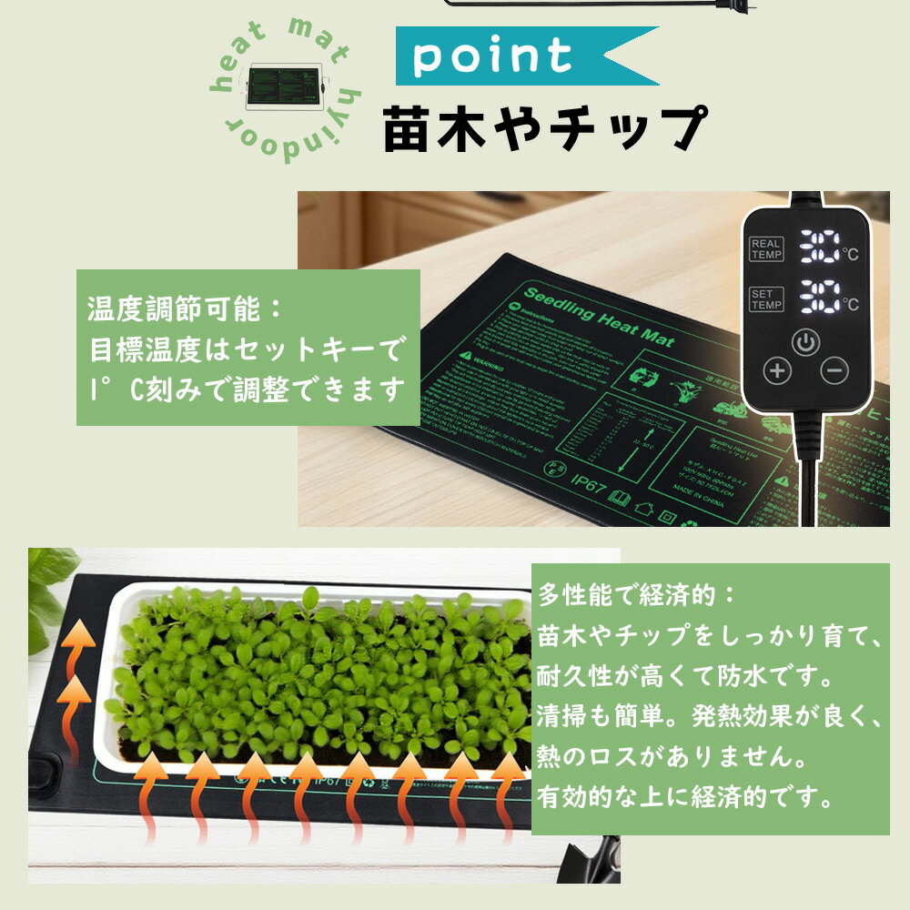 【目標温度と実温度を表示】デジタルヒーターマット 植物 現在と設定温度表示 ヒーターマット コントローラー付き ヒートマット データディスプレイ 温度調節 園芸用ヒーター 25.4*52.7cm 0-50度 園芸発芽マット育苗マット 温床関連 育苗器 菜友器節水保温 日本語説明書付き